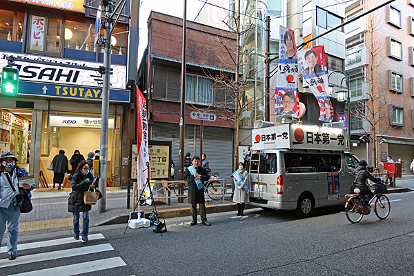 幡ヶ谷駅前で日本第一党が「旧統一教会解体!」って街宣してました。