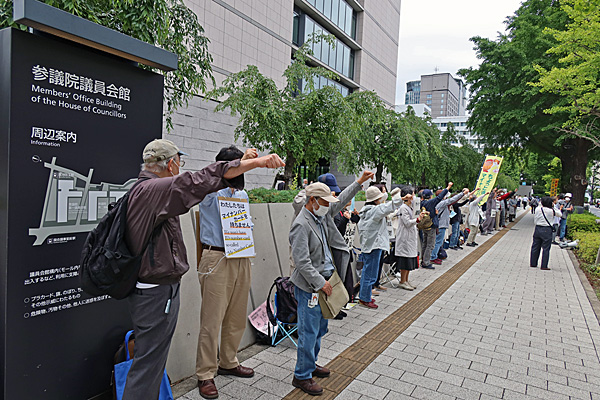 隣りに原発反対の人たちもいて、いっしょにシュプレヒコールをあげてました。