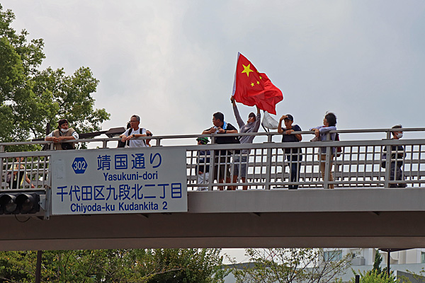 歩道橋の上の五星紅旗の青年は何だろうか?