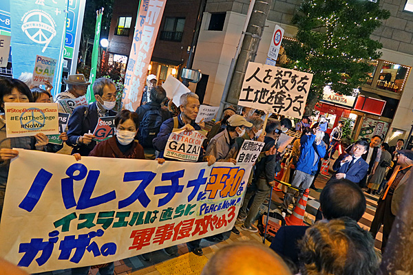 「パレスチナに平和を!全ての人びとを殺すな!」