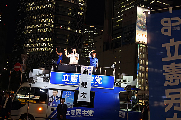 東京7区(港区・渋谷区)候補の松尾明弘さんのスピーチ(1枚目)などを15分くらい聴いてましたが、泉健太代表が来るのは6時30分過ぎというので、諦めて帰りました。