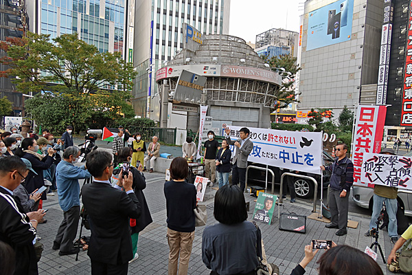 「即時停戦を!ガザ侵攻やめよ」緊急街頭宣伝