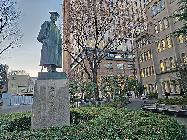大隈重信像の前にはすでにないにしても、「7号館と11号館付近」にはあるだろうと探しましたが、赤の看板は見つけられませんでした。