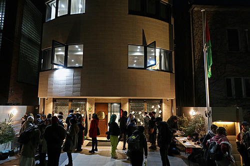 in front of General Mission of Palestine Tokyo Japan