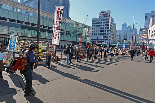 いつもの日の丸おじさんと並んで、「女性天皇と共に明るい日本を実現する会」の人が街頭演説してました。