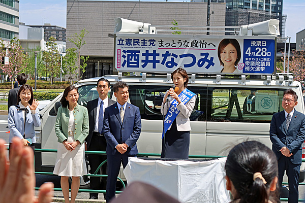酒井なつみ(立憲民主党) 第一声 豊洲駅前 三井ガーデンホテル前