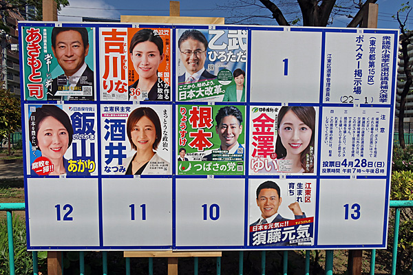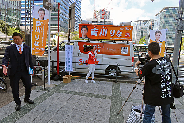 今日は、飯山あかり(日本保守党)→金澤ゆい(日本維新の会)→酒井なつみ(立憲民主党)→吉川りな(参政党)と4候補見て回りました。