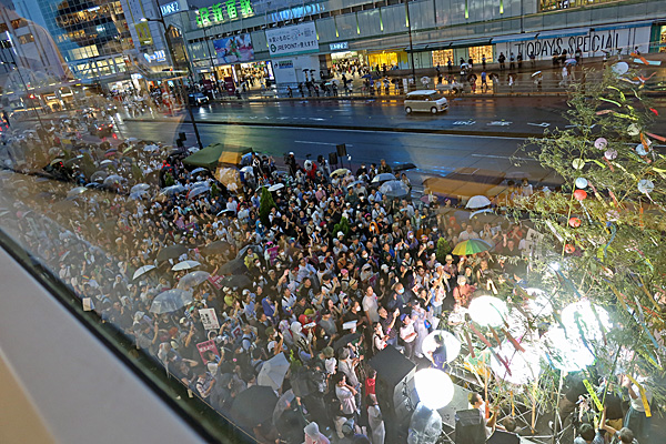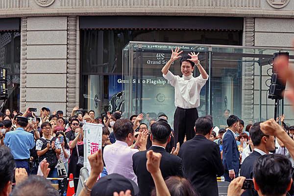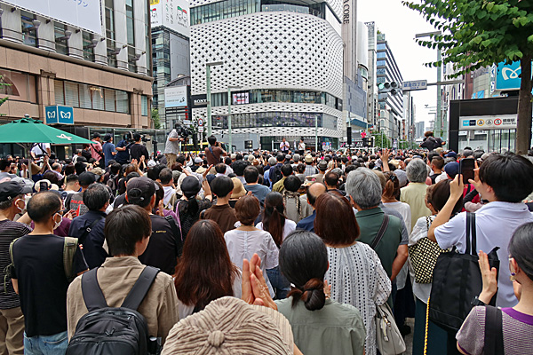 銀座四丁目交差点、蓮舫候補の街頭演説です。