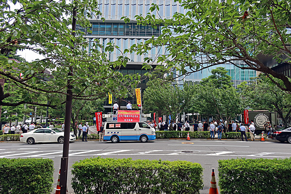 11時頃、最高裁判所に向かう道すがら、東京ガーデンテラス紀尾井町の前を通ったら「あらゆる形態のライドシェア反対 白タク事業を中止せよ 自交総連」ってやってました。