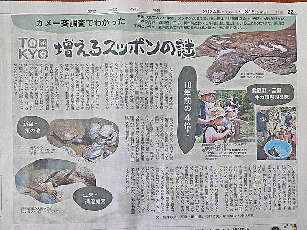 7月31日の東京新聞に「増えるスッポンの謎」という記事が載ってました。
