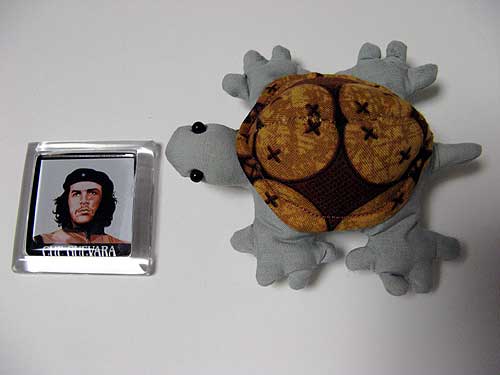 中野で友人と約束をしてて、その途中にちょっとだけ立ち寄ったのですが、なんと写真のようなカメさんとマグネット付きゲバラをいただいてしまいました(恐縮)。