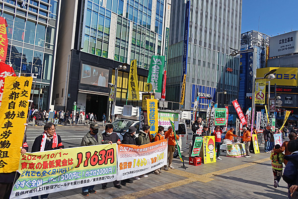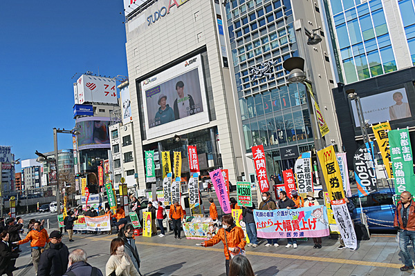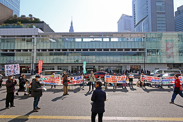 12時過ぎ、新宿駅東口で全労連系の人たちが