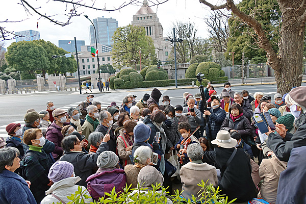 2月3日 午後1時、国会正門前です。