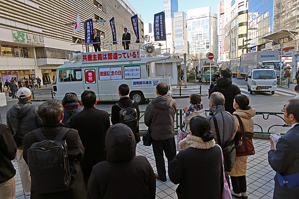 新宿駅の東口と東南口の間で国際勝共連合が街宣してました。