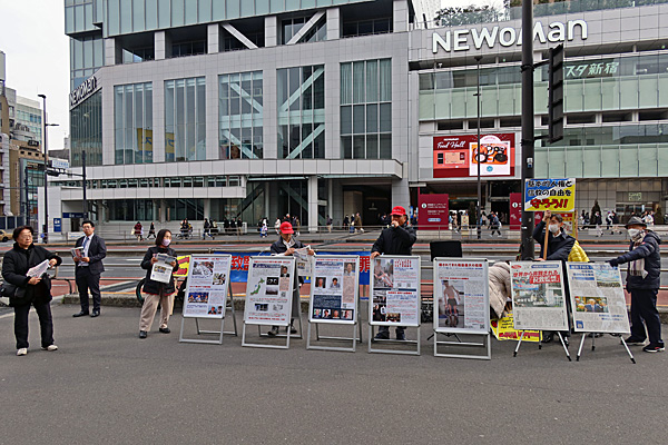 新宿駅南口と東口と二手に分かれて家庭連合の人たちが街宣してました。