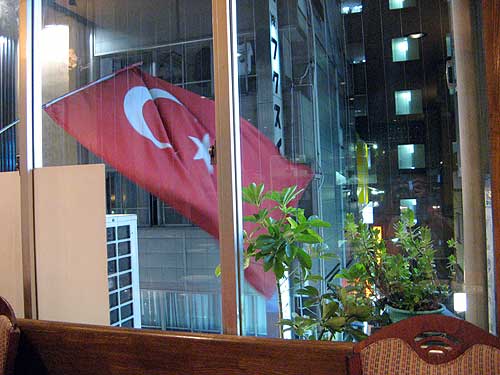 雷鳴の中、トルコの旗がはためいてました。