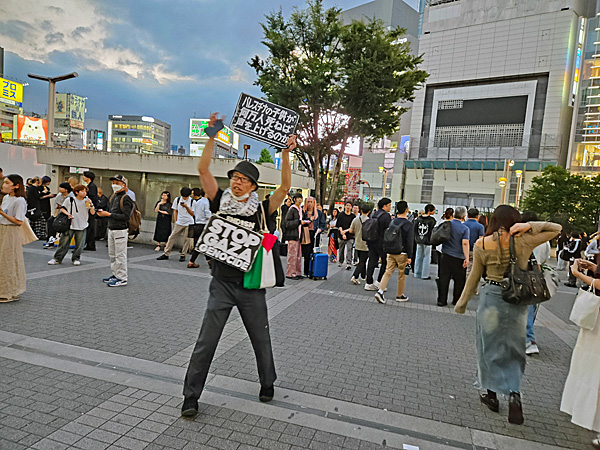 帰り道、新宿駅東口で甲羅干し懸垂さんに遭遇しました。