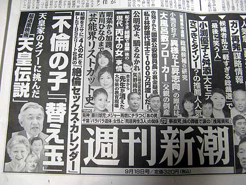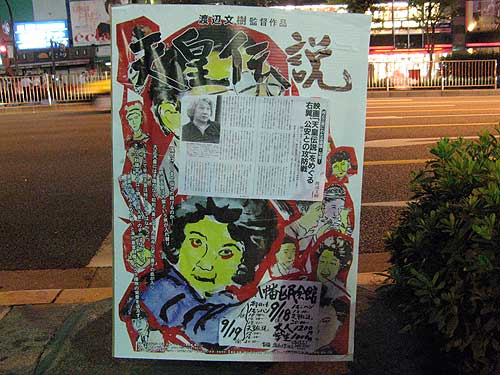 ラクーアの帰り、友人に、今日発売の「週刊新潮」に『天皇伝説』の煽り記事が載ってたよ、という話をしたその瞬間、このポスターが目に飛び込んできました。