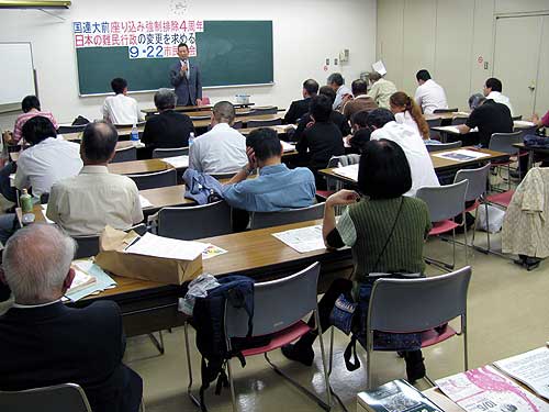 04年国連大前座り込みの意義/法務省・入管の難民行政の実態/イランの専制、人権抑圧の現状/基調報告(いかに闘うのか)/質疑・自由討論/連帯の挨拶、国会の中からなど。
