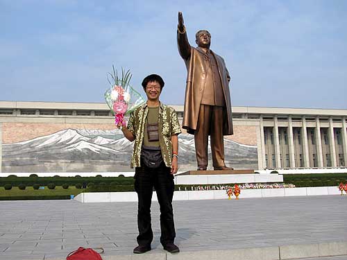 万寿台(マンスデ)の丘の金日成主席の銅像の前で