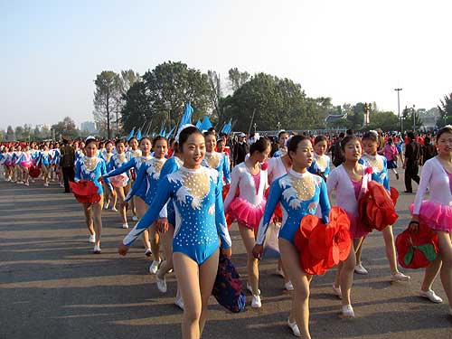 マスゲームを終えて家路につく少女たち