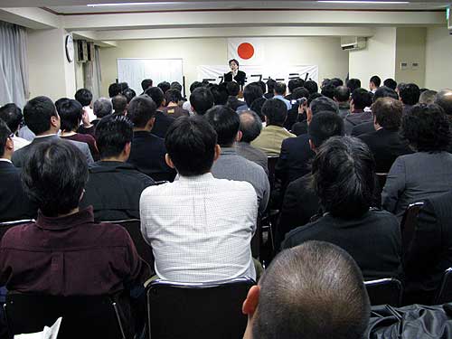 会場は写真のように寿司詰め状態で、聴衆は100名を超えてたのではないかな。