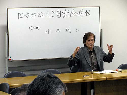「田母神論文と自衛隊の現状」というタイトルで小西誠氏が講演しました。