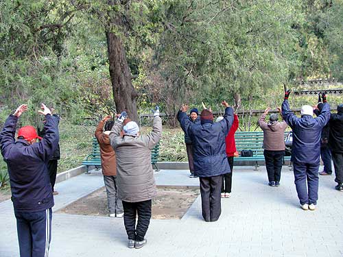 体操をしたり、太極拳をしたり、カード・ゲームをしたり、楽器を演奏したり、歌ったり、踊ったり、唸ったり、いろんなグループや個人がいました。
