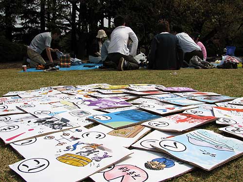 僕が行ったときには「かるた」はやってませんでしたが、まったりと10人くらいが芝生の上に坐ったり寝転んだりご飯を食べたりしてました。