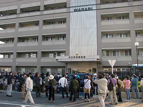 その後、抗議活動に参加した人々の多くは蕨署に集まり、正規の手続きに則って逮捕された人への面会を求めました。ところが蕨警察署はバリケードを築き警察官を配置し、根拠も無く面会を拒みました。それどころか弁護士が身分を提示して面会を求めても1時間以上にわたって面会を拒否し続けたのです。そして突如そこに蕨警察署に先導された右翼が登場しました。彼らは抗議活動に参加した人々に罵声を浴びせかけ、その際に生じた混乱の中で一名が公務執行妨害容疑で逮捕されたのです。