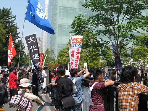 面白そうなコースだし、デモにもご同行したかったのですが、時間の関係で、正門前集会だけちょこっと覗いてきました。