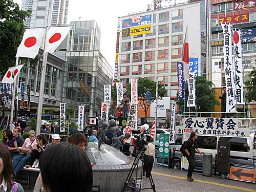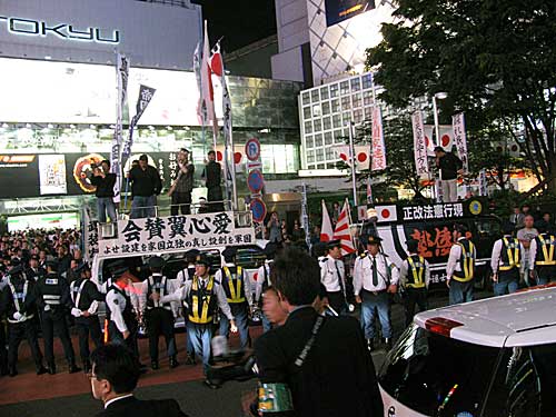 街宣車の上から、おまえら北朝鮮に帰れ、などと怒鳴ってました。