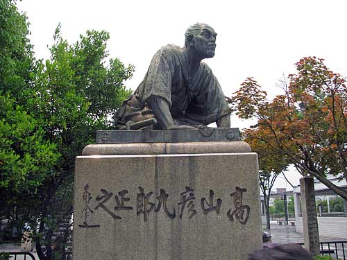 午前11時ちょっと前に三条京阪駅に着いて、緊急行動の集合地点である三条河川敷へと向かうべく、地上へ出た直後、目に飛び込んできた銅像です。