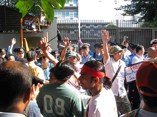 警察はおおむねビルマ人たちに宥和的なのですが、以前、大使館前で逮捕された(任意同行?)ビルマ人もいると聞いたことあるので、心配しました。