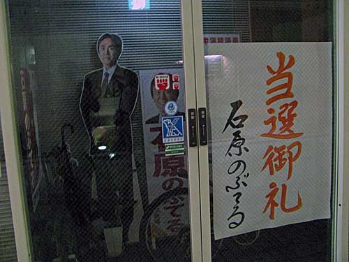Asagaya / Loft Aの帰りに、石原のぶてる事務所の前を通ってみたら、「当選御礼」だと。