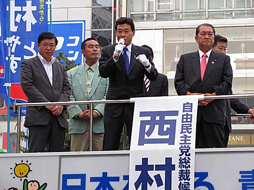 西村なんとかって、あんた誰? って感じですが、3候補の中で一番タカ派だとか。