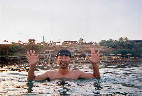 死海で泳ぐ。