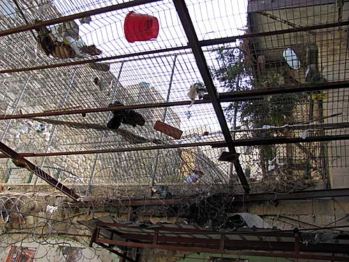 ヘブロンの一角にはユダヤ人とパレスティナ人がこのように上下に暮らしてる場所が何か所かあります。