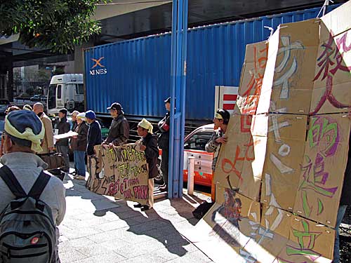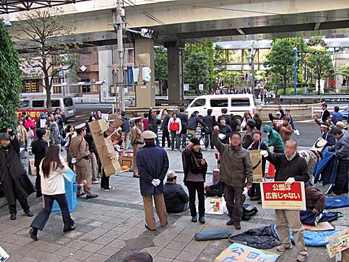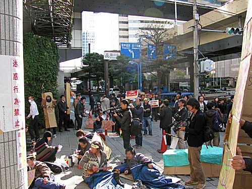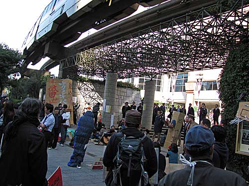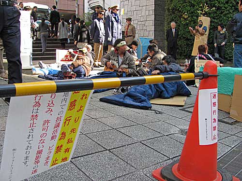 午前11時半過ぎから午後1時前まで天王洲アイル・シーフォートスクエアのナイキ本社前に寝袋を拡げて、ピクニックを敢行しました。