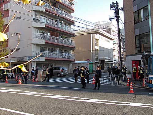 渋谷の「12・23クリスマス粉砕デモ」の行き帰りに千駄ヶ谷区民会館の脇を通りましたが、僕が通った時間帯は右翼も特にいず、こんな感じでした。