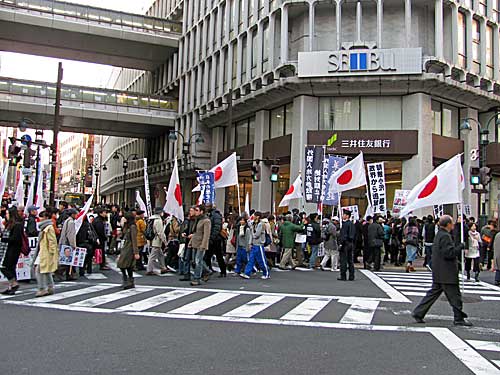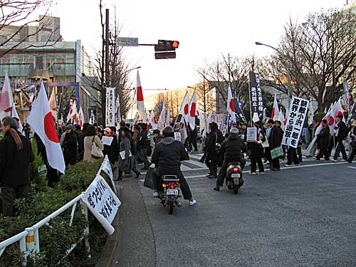 革非同・黒い旅団合同「12・23クリスマス粉砕デモ」への道すがら日の丸な方たちに遭遇しました。