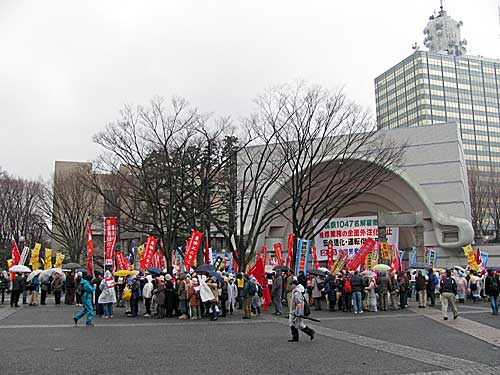 「バレンタインデー粉砕デモ」に行く道すがら覗いてみましたが、ちょうど「団結ガンバロー!」が終わったところに到着しました。