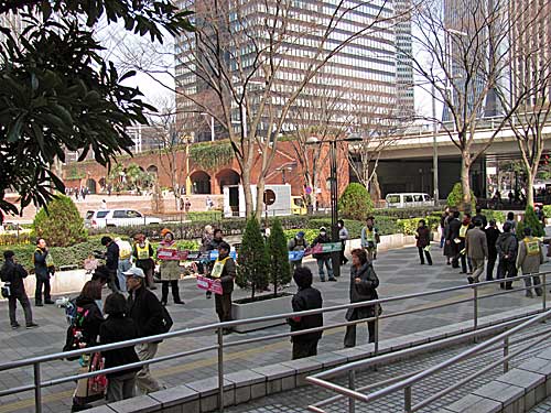 人数はそれなりに集まってるのに、横断幕はないし、視覚的訴求力があまりなくて、なんだかもったいない。