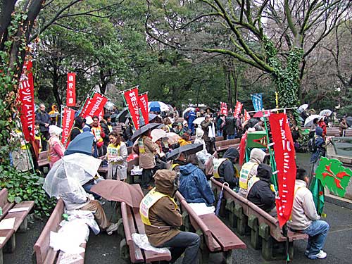 たいした雨じゃなかったし、なんで? って感じですが、「レイバーネット日本」の記事によると、「マーチ・イン・マーチ」は「パレードは雨天のため中止」だそうです。