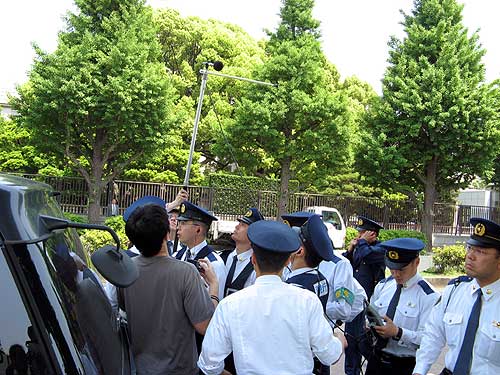 ZAKIさんが歌い始めると、おまわりさんたち、すぐに大勢集まってくるよ。