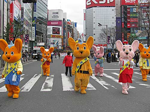 渋谷で11時30分に出発予定の『年間自殺者3万人の「葬式パレード」』に急ぐ道すがら、新宿通りで新宿区交通安全パレードに遭遇しました。