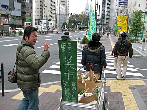 近づいてみたら、「自由と生存の野菜市」の出張販売の皆さんでした。