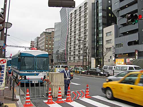 昨日あたりから韓国文化院のまわりが厳戒態勢です。
