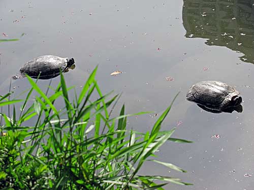 日比谷公園の池でカメさんたちが気持ちよさそうに日向ぼっこしてました。