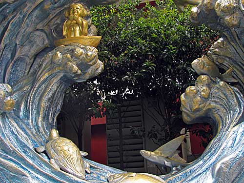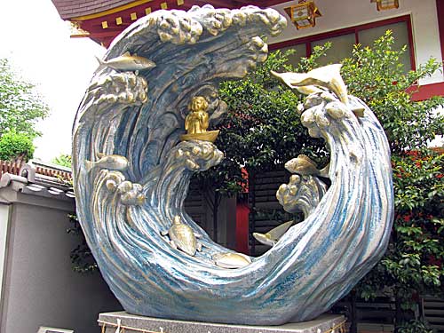 イルカやタイやトビウオやカメなど、海の仲間に守られて大海原を渡られるお姿だそうです。
